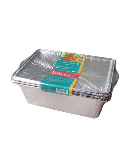 310 ml Gold Aluminium Container with Lid SIZE: L 161 x W 112 x H 30 mm PACKING: 5 pcs x 6 pkts